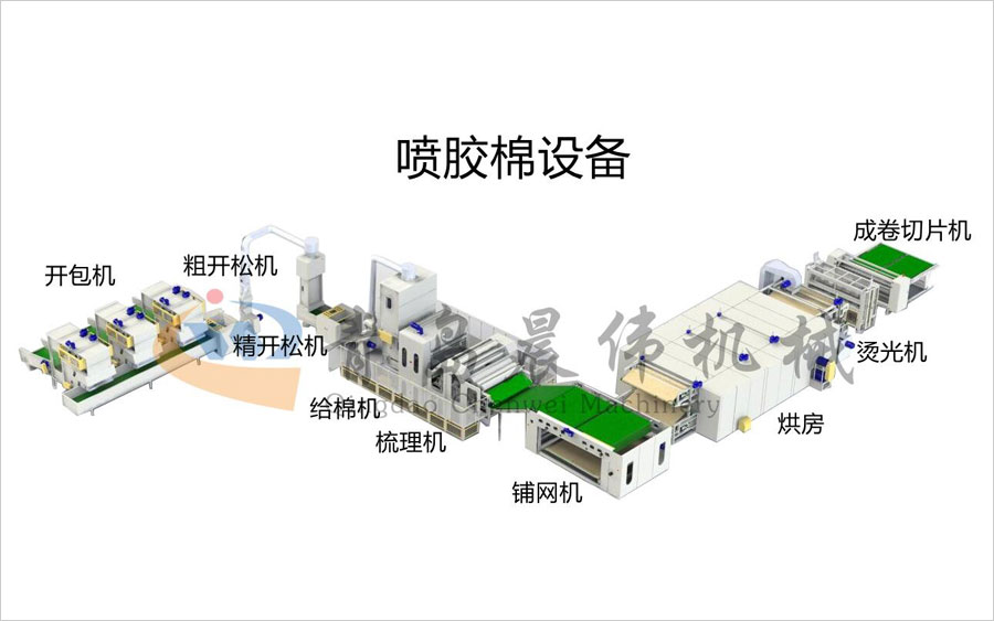 開(kāi)包機-開(kāi)松機-振動(dòng)給棉機-梳理機-鋪網(wǎng)機-烘房-燙光機-成卷切片機