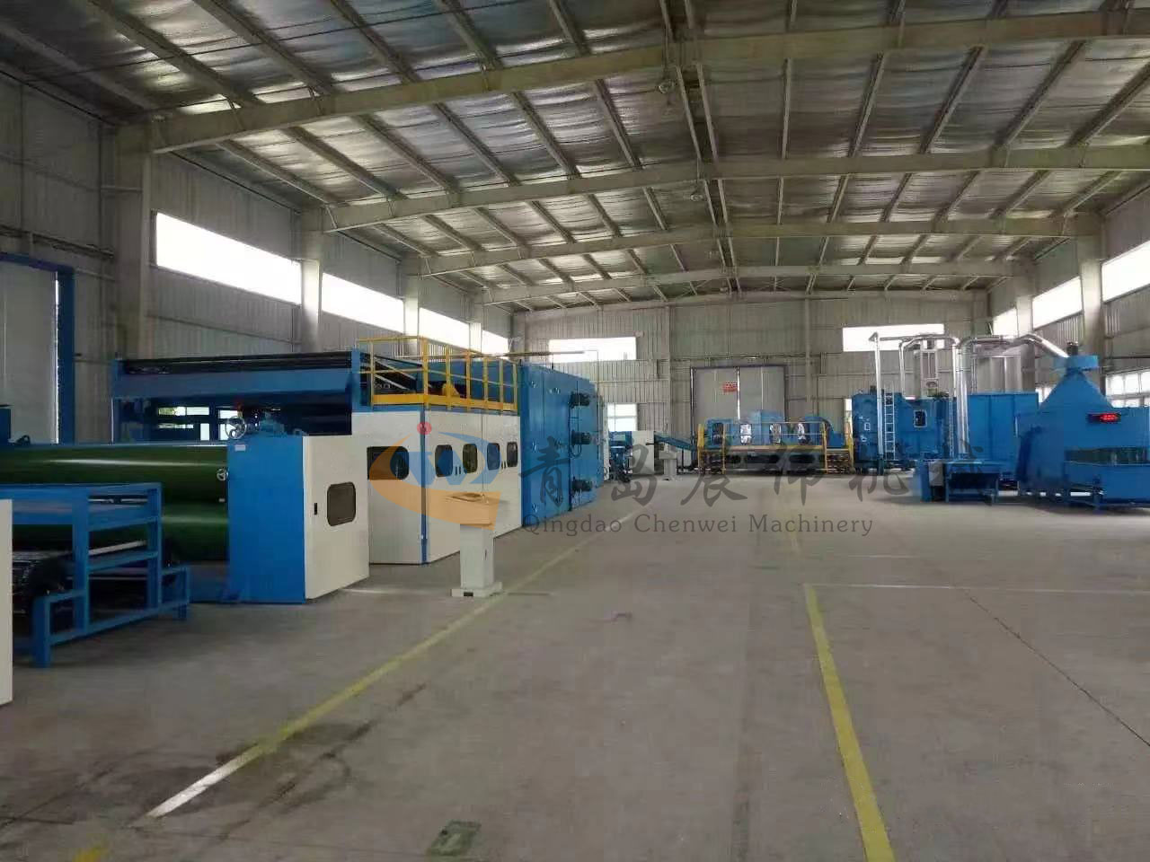 5. CWPW-鋪網(wǎng)機:用于將梳理纖網(wǎng)通過(guò)移動(dòng)小車(chē)交叉折疊為所需幅寬和定量的多層纖網(wǎng),以供后道工序使用。鋪網(wǎng)輥采用特殊結構,加裝壓網(wǎng)輥和導流板,不飄網(wǎng)不起皺,五只大功率電機精確控制各部件的運動(dòng),電動(dòng)輸出簾高度調節裝置