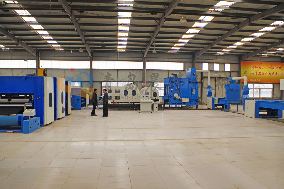 開(kāi)包機-開(kāi)松機-振動(dòng)給棉機-梳理機-鋪網(wǎng)機-針刺機-切邊成卷機