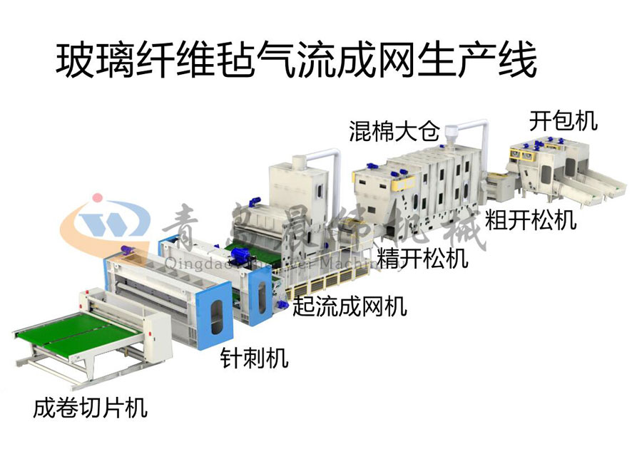 該生產(chǎn)線(xiàn)用于生產(chǎn)玻璃纖維針刺氈。