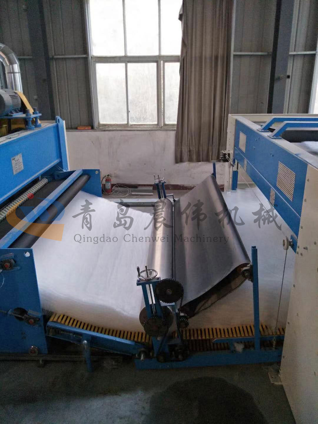 5. CWPW-鋪網(wǎng)機:用于將梳理纖網(wǎng)通過(guò)移動(dòng)小車(chē)交叉折疊為所需幅寬和定量的多層纖網(wǎng),以供后道工序使用。鋪網(wǎng)輥采用特殊結構,加裝壓網(wǎng)輥和導流板,不飄網(wǎng)不起皺,五只大功率電機精確控制各部件的運動(dòng),電動(dòng)輸出簾高度調節裝置