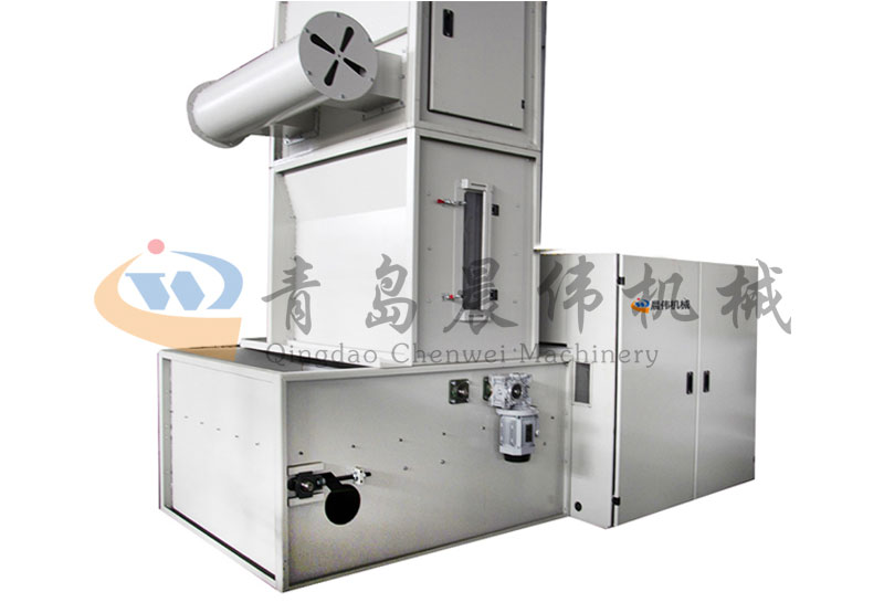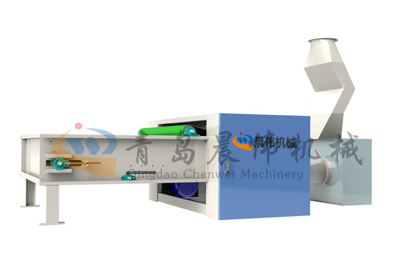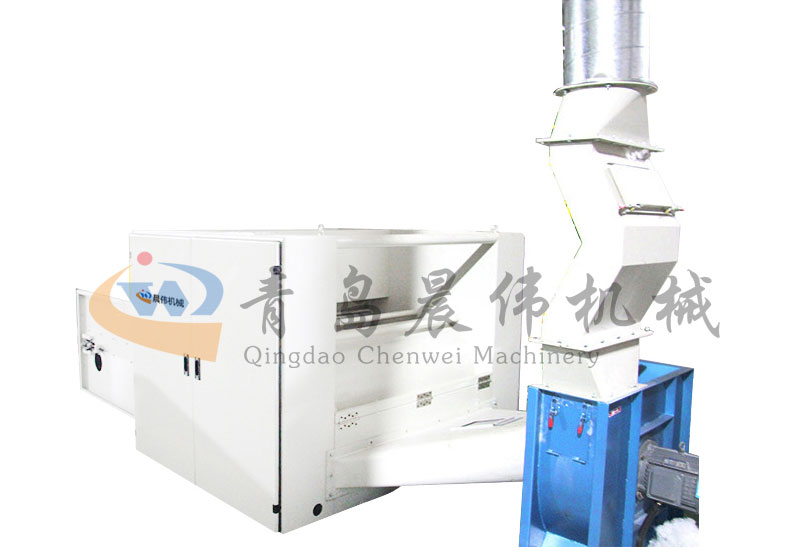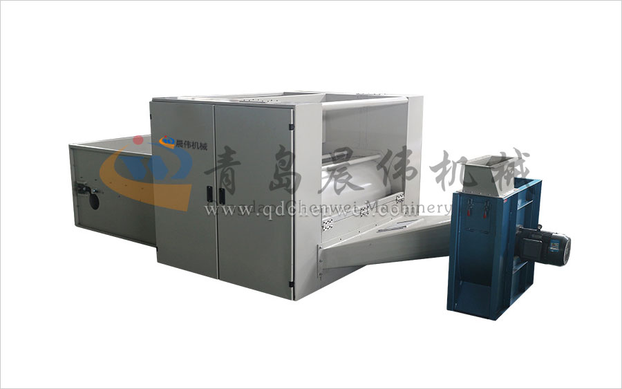 各種不同纖維被放入水平輸送簾,經(jīng)壓棉輥和對輥羅拉喂入,經(jīng)輸棉風(fēng)機以適量的風(fēng)量輸送纖維原料供后道工作使用;并配備橋式除鐵裝備。
