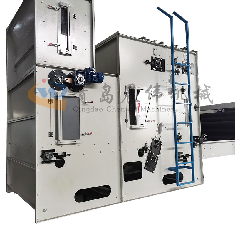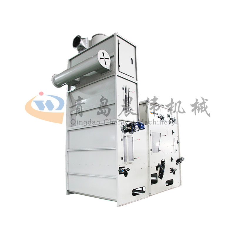 震動(dòng)式給棉機主要式將經(jīng)過(guò)初步開(kāi)松的纖維集中收集在棉倉中,并且鋪成相對均勻,等厚,等寬的纖維棉層輸送到梳理機。